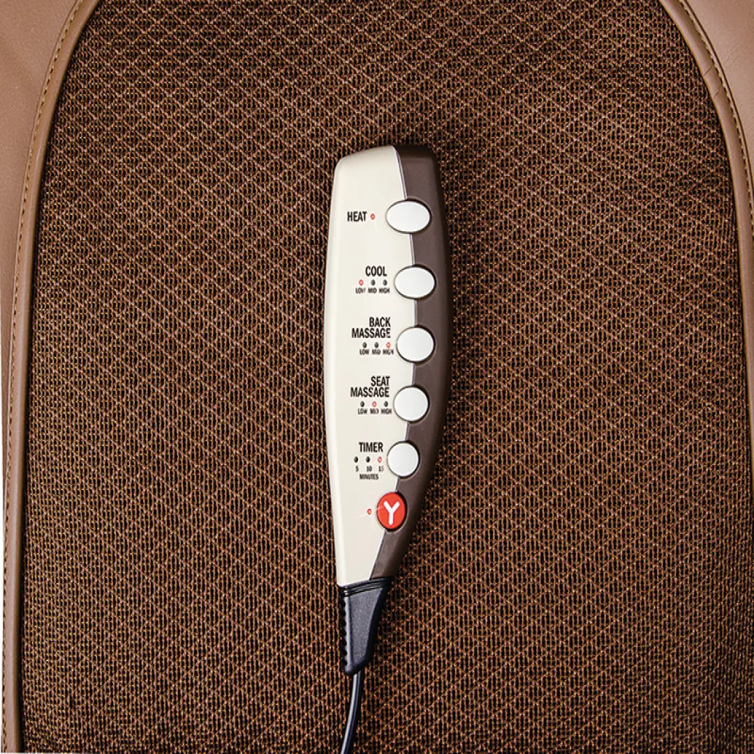 Главное достоинство массажной накидки Yamaguchi Drive - в необычном строении её поверхности. Она пронизана специальными каналами, подающими прохладный воздух к телу. Благодаря вентиляция (с 3-мя уровнями интенсивности) возникает особый микроклимат, который позволяет как следует взбодриться в знойный день и насладиться сеансом массажа. Вы можете выбрать глубокий вибромассаж спины (Back Massage) и ягодиц (Seat Massage) - он устранит спазмы и отёчность, или прогревание (Heat), которое снимет напряжение с мышц и избавит от болезненных ощущений.