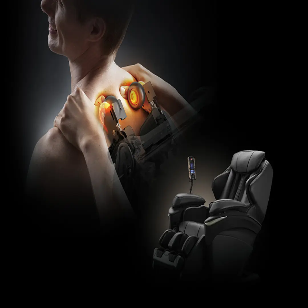 Данная модель поддерживает технологию термального массажа, выполняемого при помощи подогреваемых роликов, имитирующих руки профессионального массажиста. Термальный массаж устраняет напряжение в мышцах спины, шеи, плеч, а также оказывает успокаивающее, расслабляющее действие.
